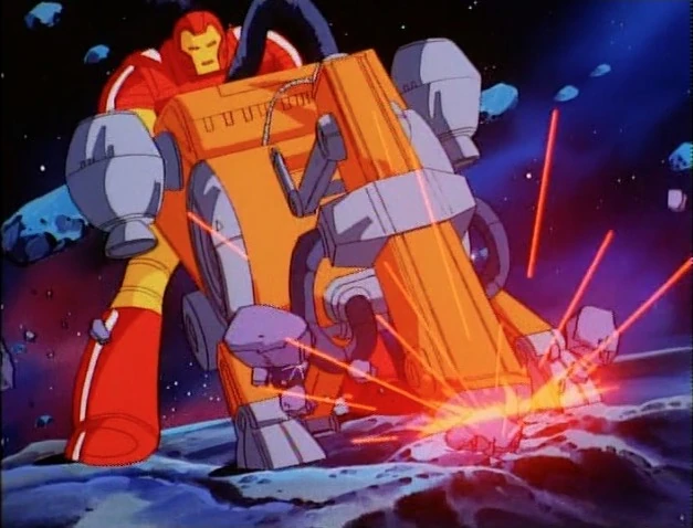 Iron Man and the device land on the meteor and he activates it. Iron Man tells the computer that he is going to mine for xenebrium on this meteor. The device starts jackhammering into the surface.