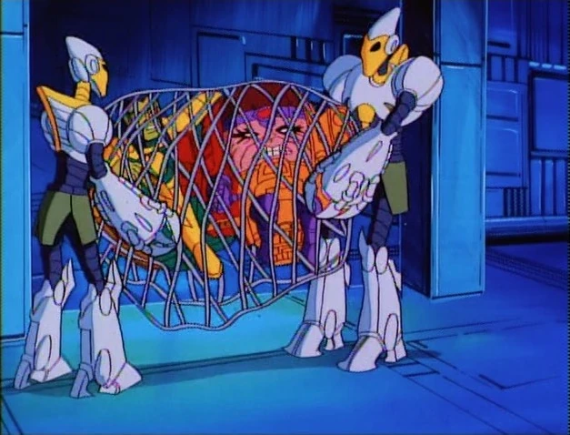 MODOK hovers away and orders his robots to work faster. He pushes a button on the console and the robots speed up.