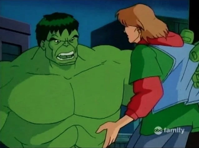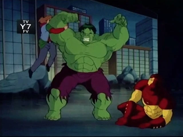 As Hulk towers over Iron Man, Rick leaps onto his arm. He once again says they are friends as Hulk grabs him. Rick pleads with him to remember that they are friends. He claims Hulk doesn't hurt his friends.