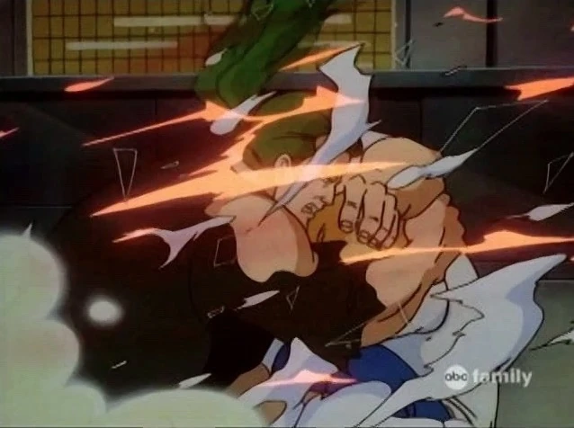 Hulk suddenly cries out in pain and collapses to his knees. He grabs Rick pulling him close as he collapses to the ground, his body glowing.
