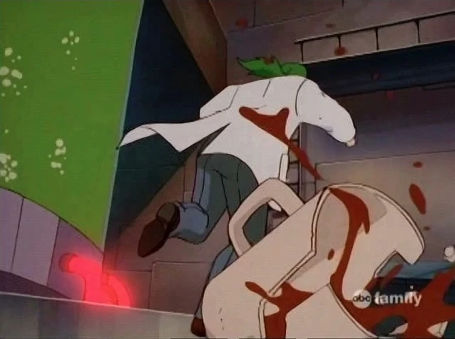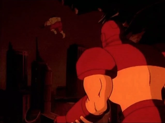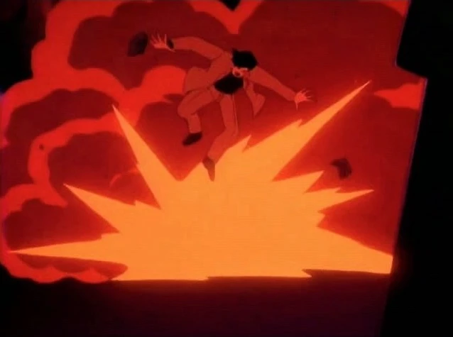 - When Bruce's eyes flash as he's buried in rubble, the flashes aren't always animated with the eyes.