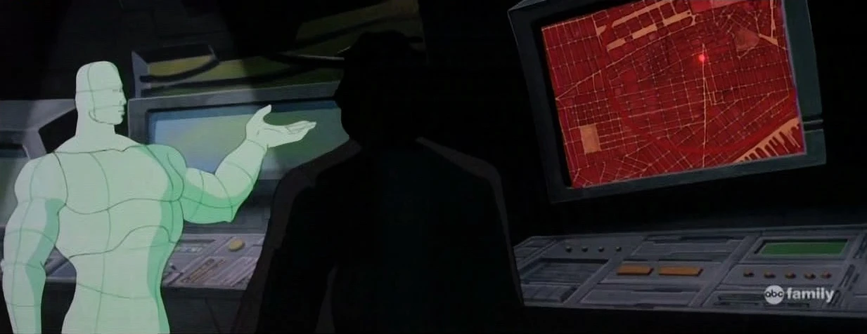 Tony laughs saying his holographic computer has developed a wicked sense of humor. He turns to H.O.M.E.R. asking if he finished the analysis. The hologram points towards a monitor explaining it came from an emergency call box in Los Angeles near 5th Street and Thomas Street.