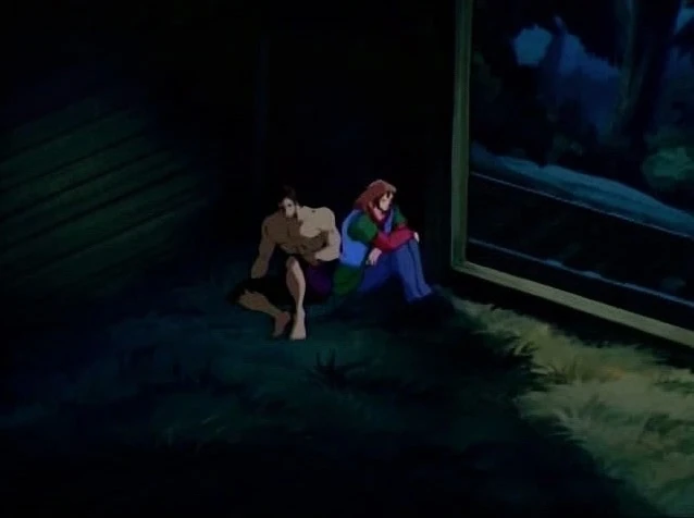 She offers her thanks and the couple walk off. Hulk watches them rubbing his cheek.