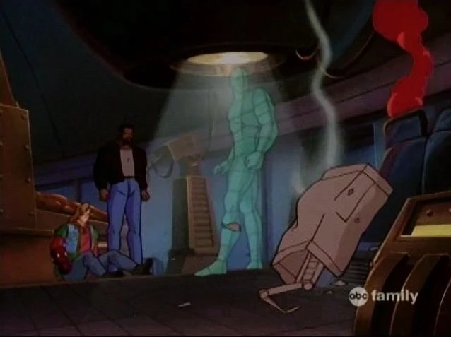 Tony turns back to Rick saying the message came in twenty minutes ago. Rick becomes excited asking where. However, he cuts himself off after being shocked to see a hologram of H.O.M.E.R. appear nearby.