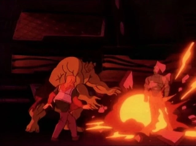Soon the flames die down and the steam goes away. Betty coughs and looks around. She jokes that Samson is almost worth having around. They stand as he asks what the point of having gamma-reinforced muscles and mind if he can't save a pretty lady every once in a while.
