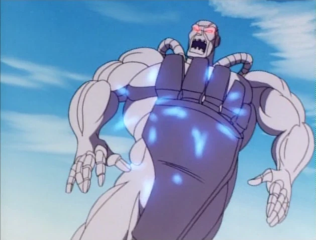 He lifts up a large belt-like device. He says that when this occipital template is attached to the base of Ultimo's skull he will reprogram it.