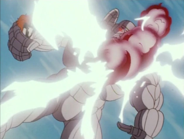 He fires a beam at Ultimo who opens its mouth. However, he is shocked and tries to pulls his arm away. He claims it is impossible that anything could absorb the power of his hypnotic ring jewel.