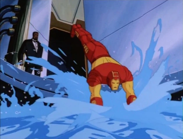 - Iron Man adapts his suit for underwater while jumping in rather than before.