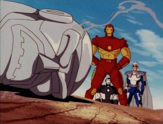 - When Tony suits up, Rhodey's voice actor noticeably changes from James Avery to Jim Cummings.