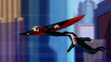 The Vulture tries to get his point across by tossing Osborn into the air and catching him later. He demands that Osborn announces he created Tech Flight, wants to be paid what he's owed and foremost wants a public apology from Osborn for stealing his work. However, Osborn declares he never apologizes, so the Vulture states that he is running out of patience. Upon saying this, the Vulture drops Osborn to certain death. Suddenly, Spider-Man comes to his rescue leaving the Vulture lost for words. He chases after them claiming to own the skies. The Vulture is shocked to hear the mysterious rescuer calling himself Spider-Man, whom he thought to be only a myth. The Vulture cuts off Spidey's web, but Spider-Man just barely breaks the fall in the knick of time. The Vulture tries to snare Osborn again, but misses. Furious, the Vulture yields and flies away.