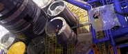The five sneak into the lab and start searching for the panel. As they find it, Doctor Octopus appears and attacks with Scorpion also appearing. The heroes engage in a fight but seem overwhelmed. Just then, Doctor Octopus's tentacles begin attacking her. Miles appears in his new Spider-Man outfit and Peter realizes he can finally control his abilities so he can send them home. However, Kingpin sees them and turns on the accelerator. He puts a strand of Vanessa's hair in the middle so the accelerator can find her. However, this starts pulling in objects like cars, trains, and even buildings in from the other five worlds. During the battle, Peni's SP//dr mech is destroyed by Scorpion who is then defeated by the Noir Spider-Man and Spider-Ham. Doctor Octopus is eventually defeated by the two Spider-Men.